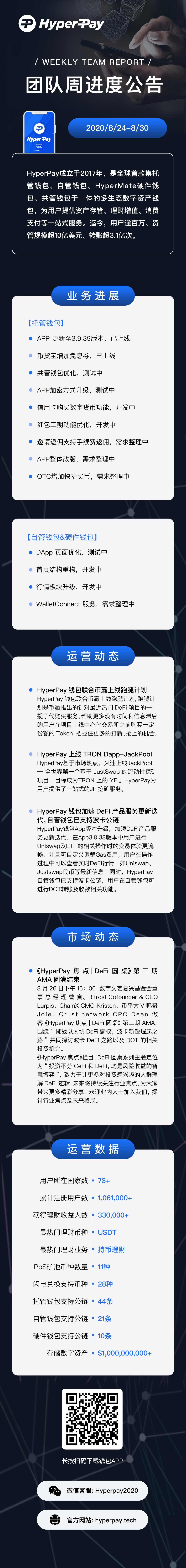 HyperPay团队周进度公告(2020/08/24 -2020/08/30)